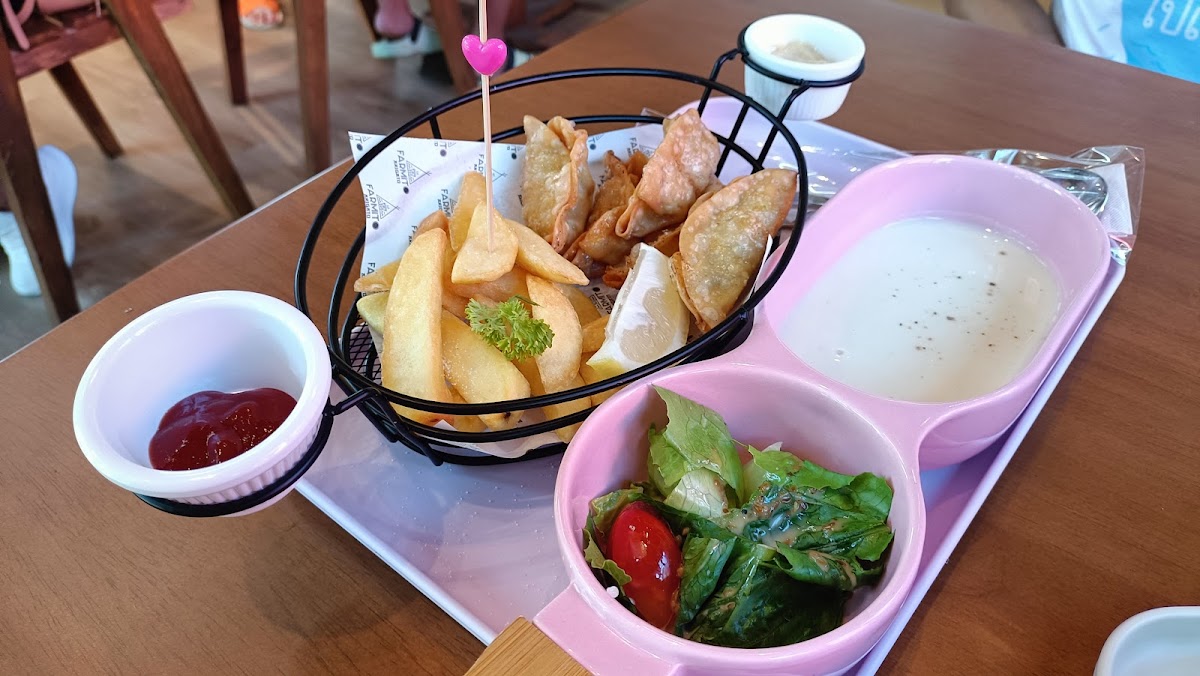 Congratulations to all involved for the soft-opening launch, especially on such an auspicious day (Saturday, September 9th) in Thailand! Great place to stop in and take pictures! Landmarks are plentiful. And, extremely happy the new coffee shop serves my favorite drink! The half American Expresso and half Orange drink comes in a nice souvenir cup, too! Value is exceptional! Promotional price of 135 baht for a set that included Chicken Karaage, fries, delicious coleslaw and the owner's signature sauce! And, to top it off...the soft serve vanilla ice cream that has Hokkaido origins all over it! I met some very nice teachers from the Asia-Pacific International University and International School. Highly recommended as the atmosphere is warm and cozy! It looks like Farmito Arigato Cafe and Farm will continue to develop it's happiness environment more and more...great addition to Muaklek and tourists traveling to Khao Yai!